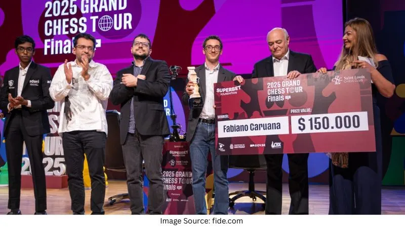 Grandmaster Fabiano Caruana won the 2025 Grand Chess Tour Finals in São Paulo, securing his second Tour title. He defeated Maxime Vachier-Lagrave in the final match after recovering from an early setback and finishing with three straight wins. Levon Aronian took third place, while Praggnanandhaa Rameshbabu finished fourth, completing an exciting and well-fought edition of the event.