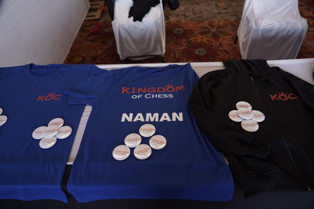 - The merchandise section showcased exclusive Kingdom of Chess hoodies and t-shirts, with an option for players and attendees to have their names customized or printed, offering a personalized keepsake to cherish.